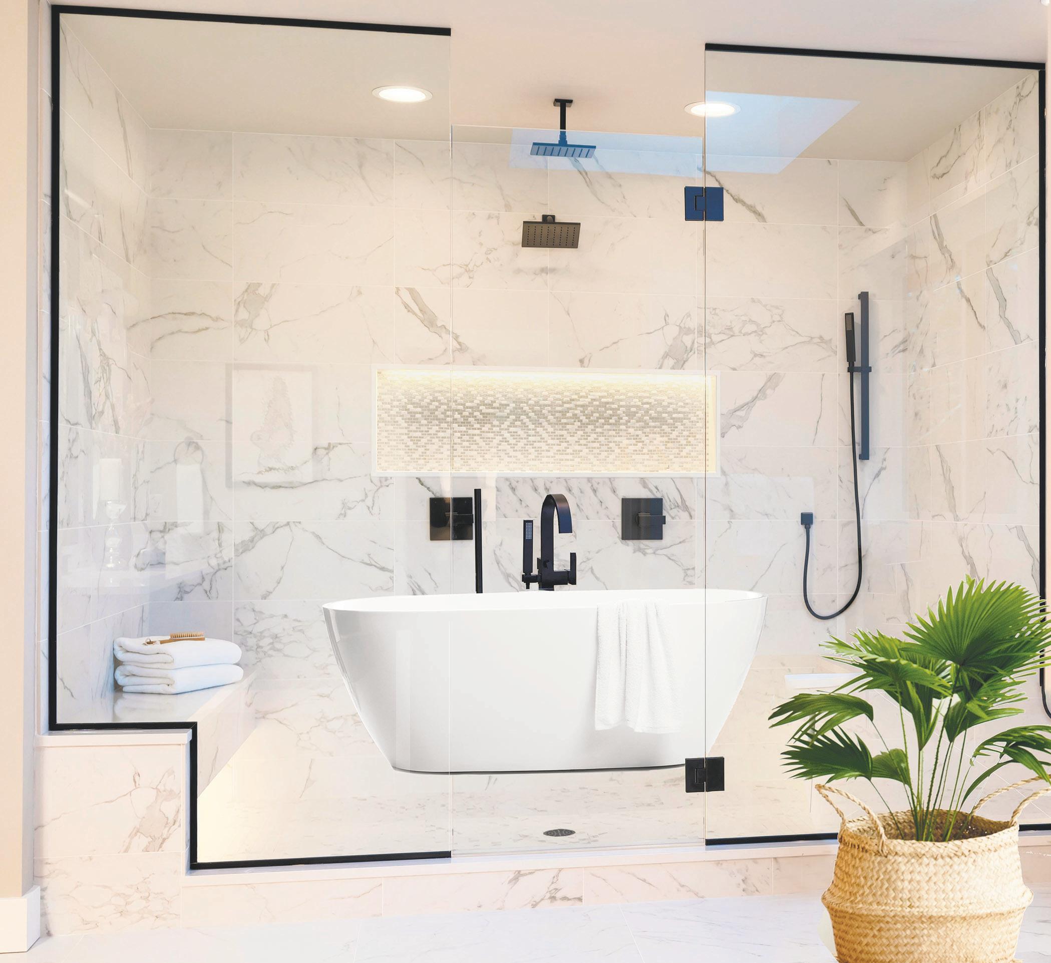 “There are so many options available if you want easier access in your bathroom. Consider a wide-entry barrier-free shower, handheld sprayers at different levels, flip-up seating, hand-held shower cradles, and well-placed grab bars. Those who prefer tub bathing but have mobility issues can opt for a walk-in tub with either deep tissue water jets or the more gentle massaging air jets, along with a hand-held shower.”