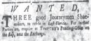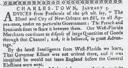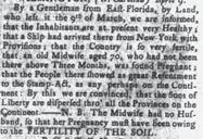 "The Packet is just arrived from England, and, it seems, this place is to be given up to the Spaniards. There are some transports now here, and 5000 tons more is taken up by government, and are expected here daily, to carry us poor Tories off, some to Providence, and some to the West-Indies." Hartford Courant, May 11, 1784
