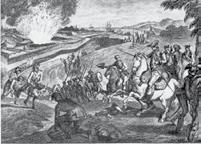 force of 40 ships and approximately 7,800 men against a British force of approximately 2,000 in the Siege of Pensacola On May 8, a Spanish shell hits a powder magazine in the Queen’s Redoubt, destroying the fort, killing approximately 100 British soldiers and leading British General John Campbell to surrender.