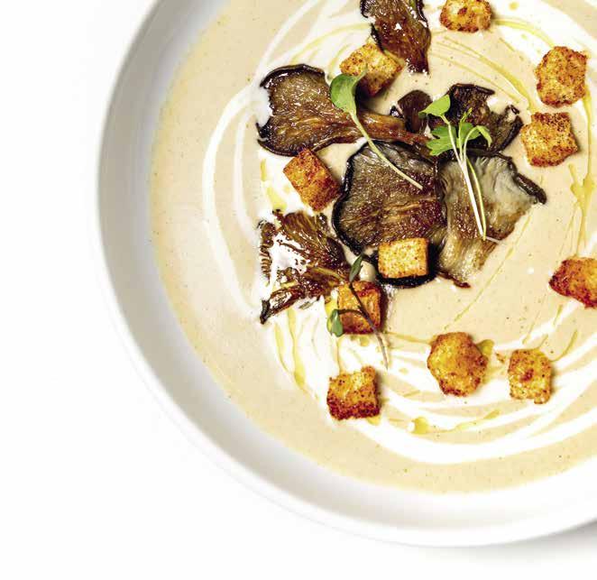 ■ Garnish ideas: sautéed mushrooms, croutons, creme fraiche and chives. Be mindful of your choice of stock. If it is heavily salted, then you might want to season at the end.