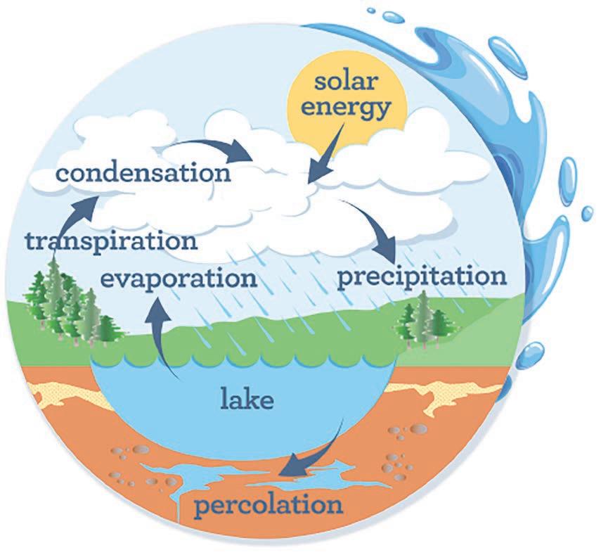Solar Energy: energy provided by the sun for the never-ending water cycle.