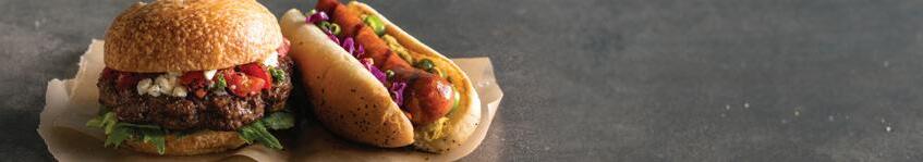 The Big Smack is a double stack of grilled beer brat patties with beer cheese sauce, caramelized onions and cider slaw served on butter toasted pretzel bun.