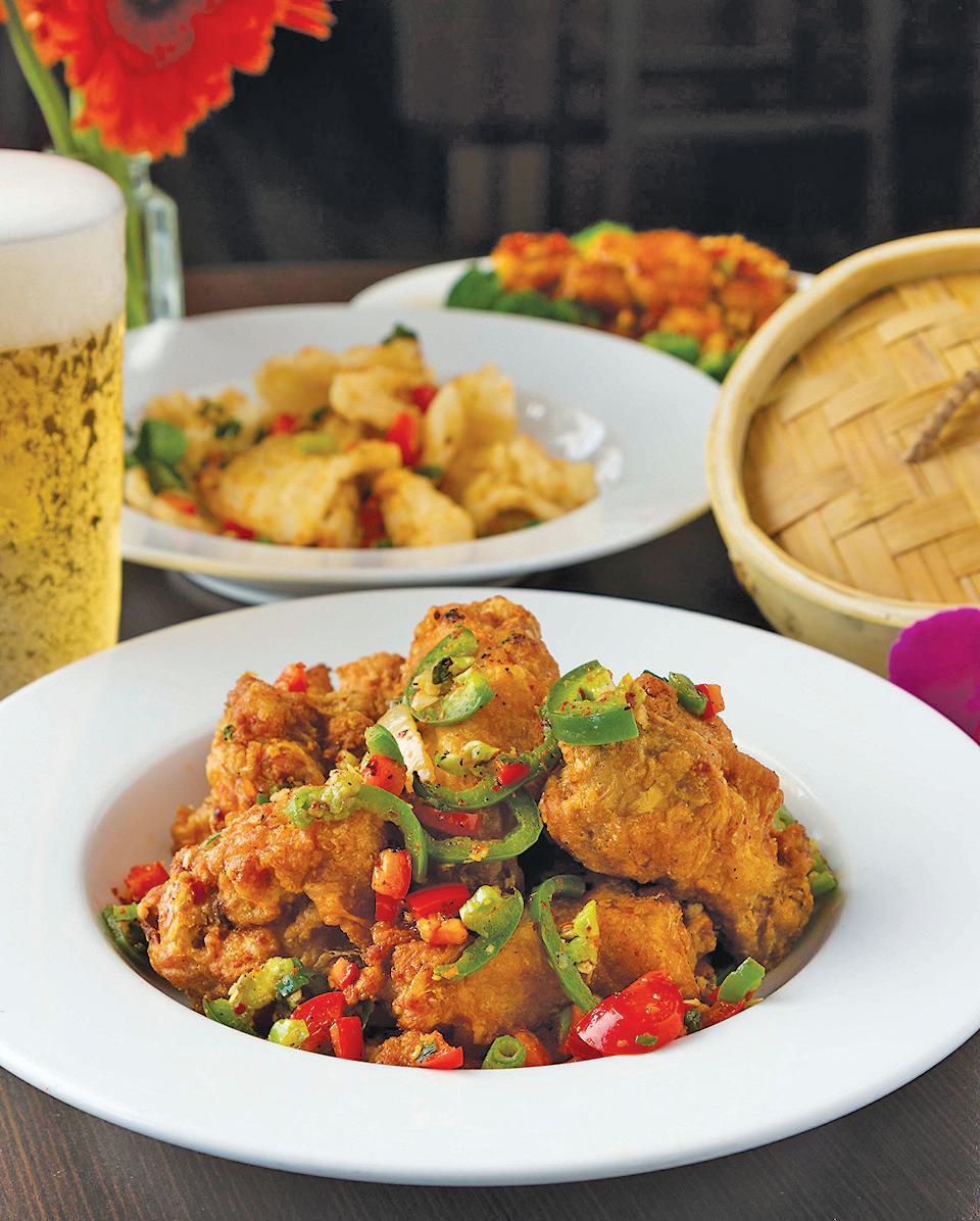 The What the Cluck? is a sandwich with fried chicken, maple-Dijon slaw and bread-and-butter pickles on a Parker House roll.