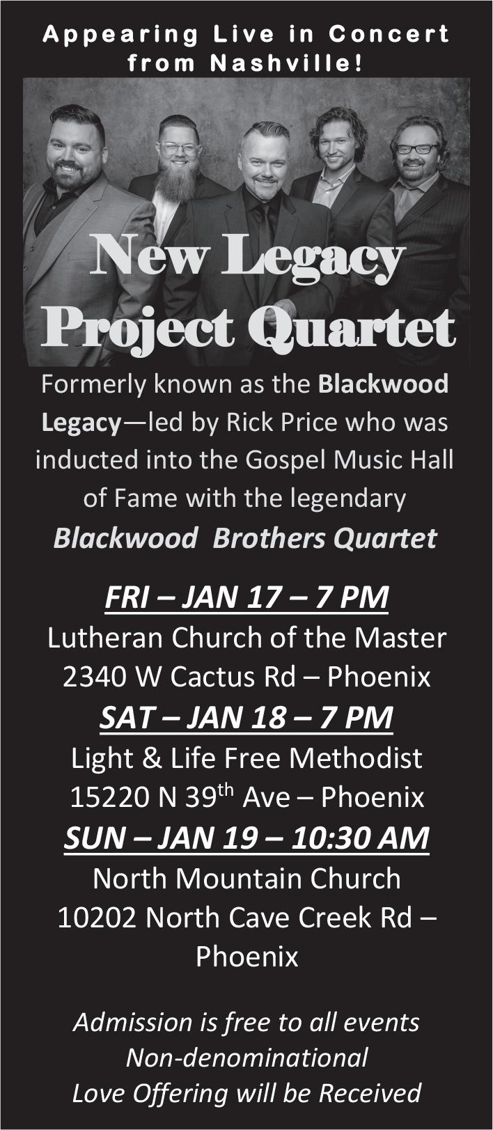Church at Litchfield Park, 300 N Old Litchfield Rd, Litchfiel d Park, AZ 85340. Burial will be 10:30 am, Tuesday January 21 , 2020 at the National Memorial Cemetery of Arizona, 23029 N Cave Creek Rd, Phoenix, AZ 85024
