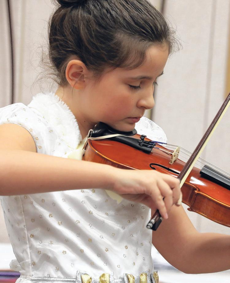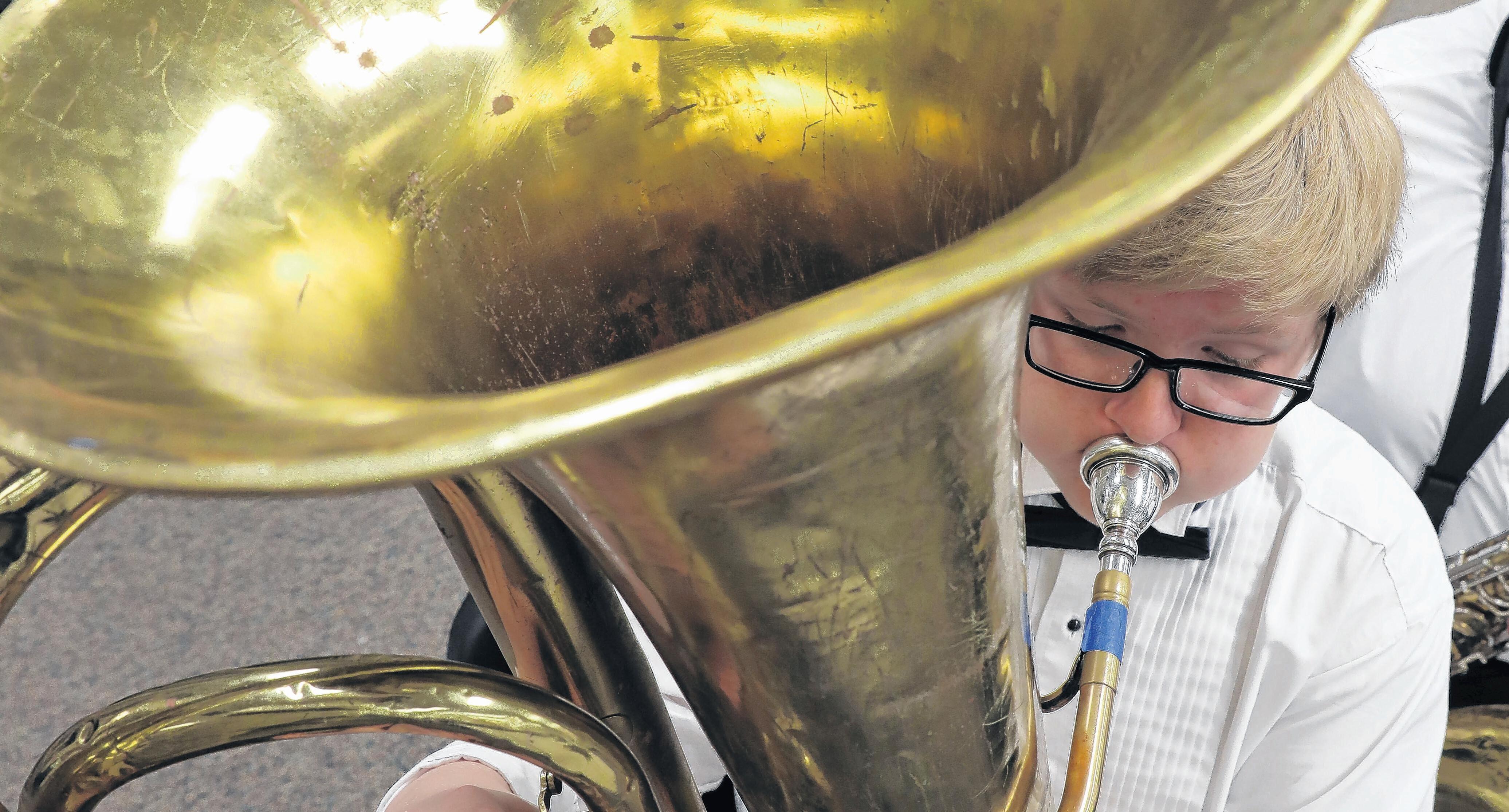 Tyler Grabowski, 13, an eighth-grader at Poston Junior High, plays in the Winter Band Concert.