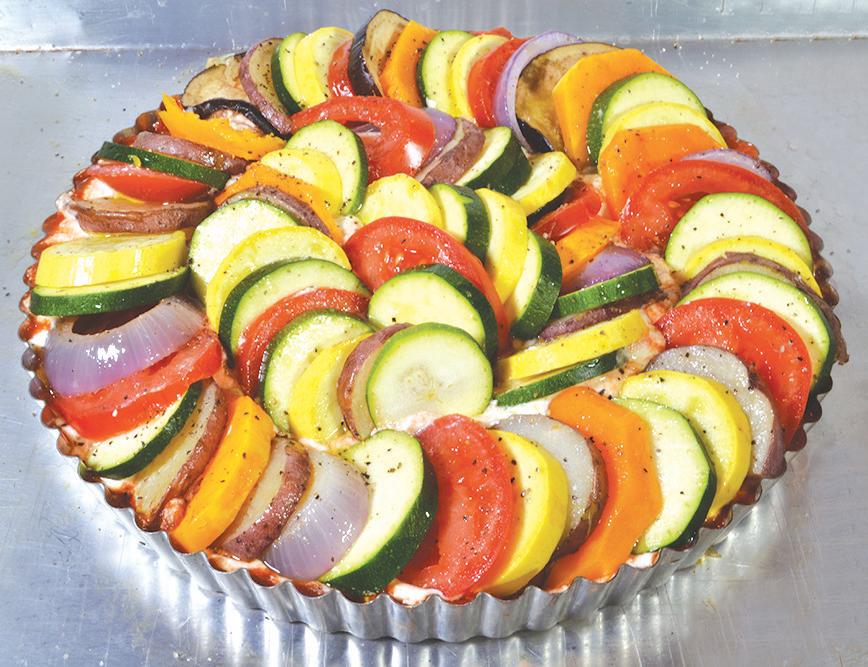 Just about everything “rainbow” is trending these days, from bagels and wa es to multi-colored pastas. So why not veggies? I’ve o ered up some of my ideas for sliced vegetables like Japanese eggplant, summer squash and purple potatoes. Make up your own rainbow of veggies, and then serve it up as a wonderful meatless main dish or colorful and tasty side.