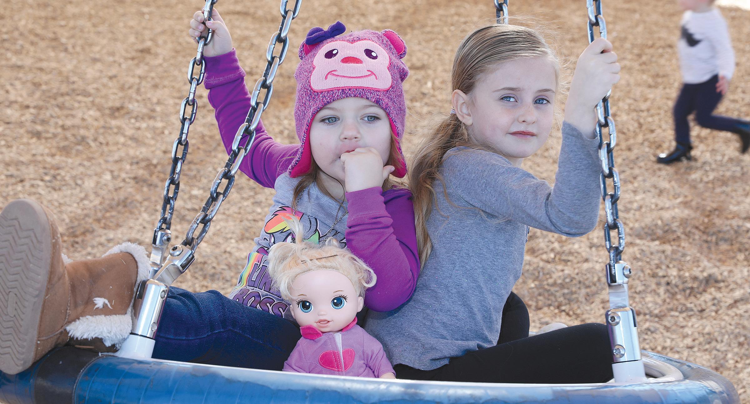 Kelsey Thompson, 3, and Paisley Hardt, 5, play at Red Mountain Park in Mesa