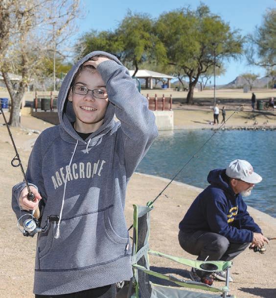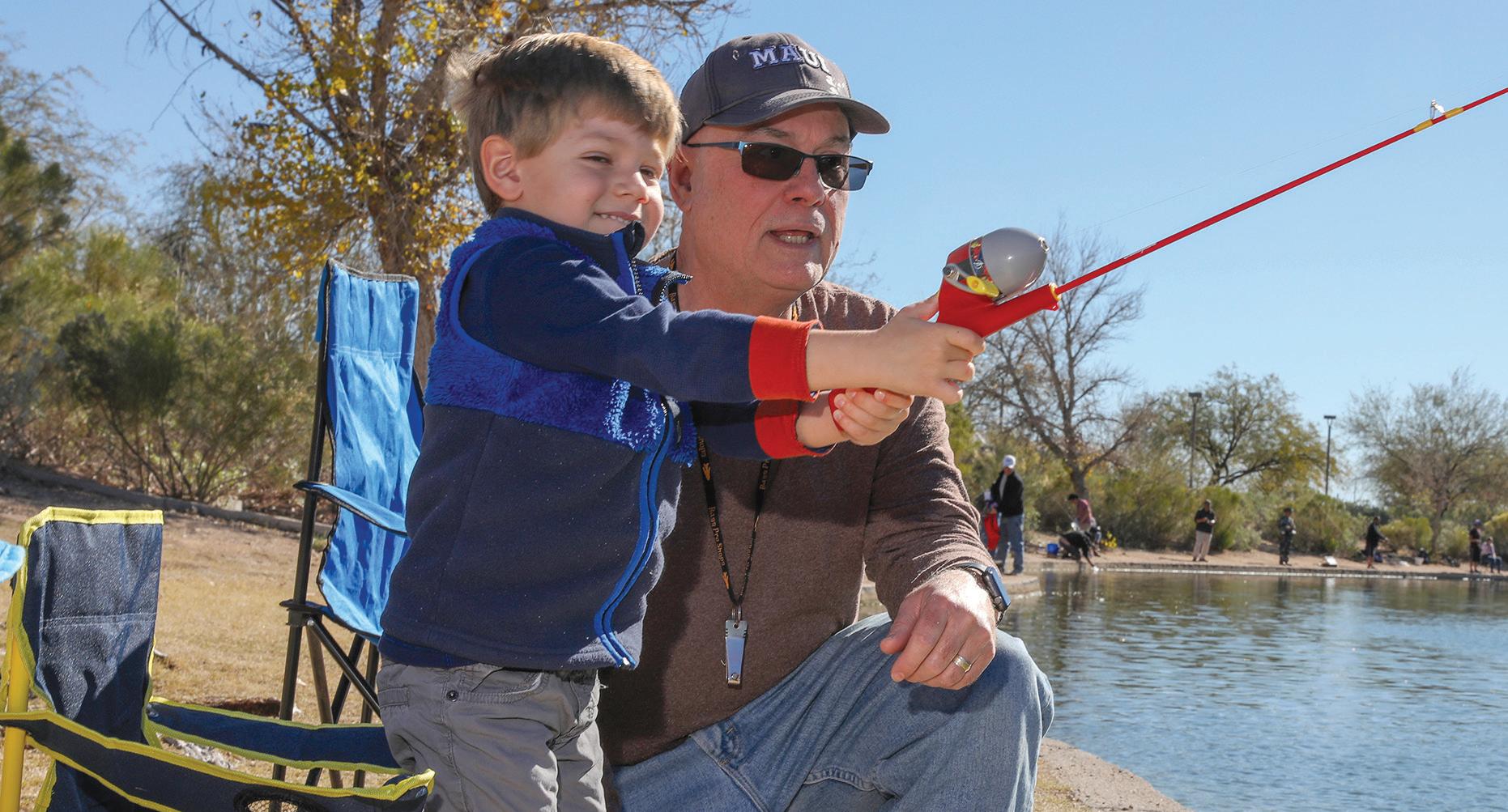 Rand Provost, 4, fishes with his grandfather David at Red Mountain Park in Mesa