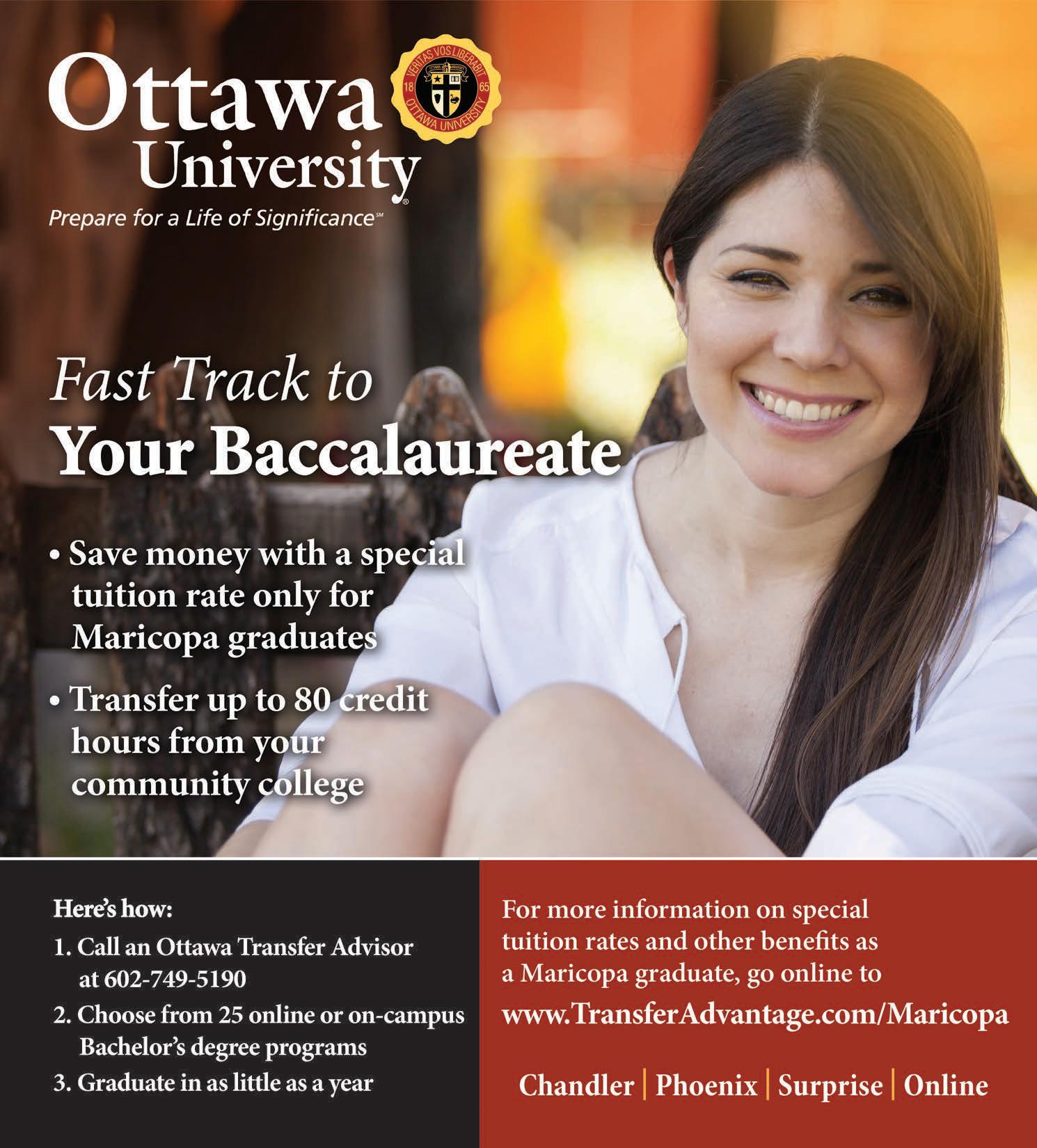 Visit the Online Transfer Center at maricopa.edu/ transfer/partners to learn more about dozens of college and university transfer options including local, out-of-state, public, private, online and onsite degree programs.
