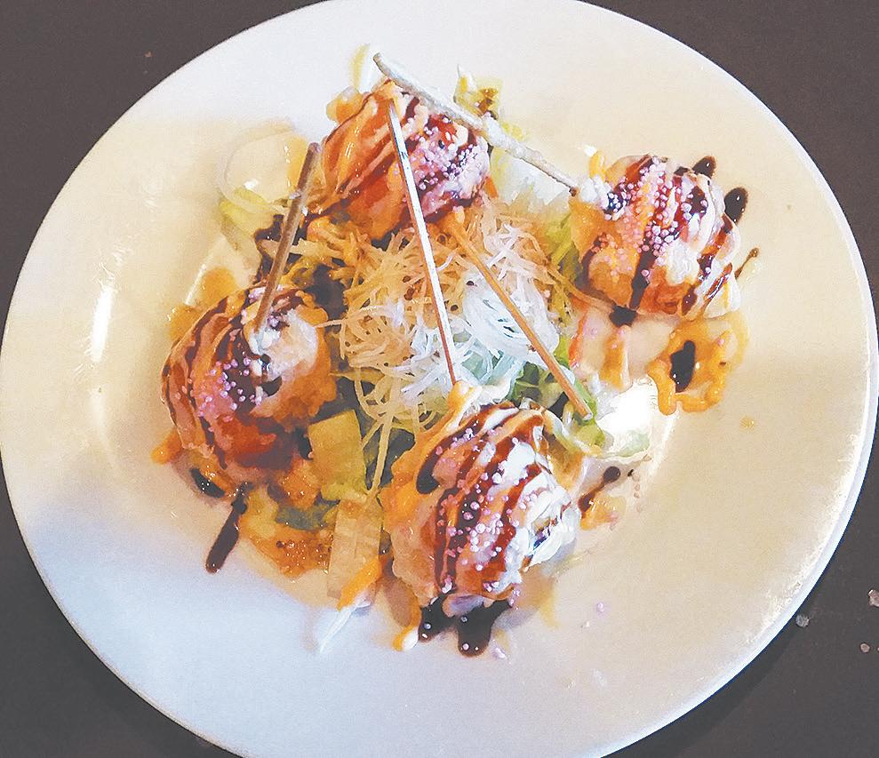 I visited Sushi Ave recently with my sushi-loving daughter, Katie, and best friend, Johnnie, neither of whom miss a chance to indulge in their favorite cuisine. We were welcomed into this smallbut-soothing dining area by dark tile and well-decorated walls. Shelves held hundreds of chopsticks belonging to loyal customers.