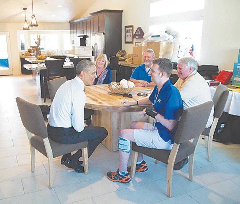 President Barack Obama visits with Sgt. 1st Class Cory Remsburg and family members at Remsburg’s newly finished home in Gilbert. Remsburg suffered a severe brain injury in Afghanistan several years ago and has made remarkable progress.