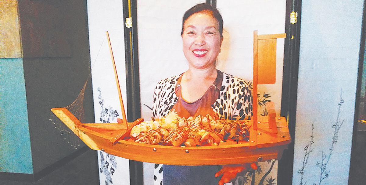 Nansook (Nana) Choi proudly presents the Sushi Ave sushi boat. GSN photo by Kathy Kerby