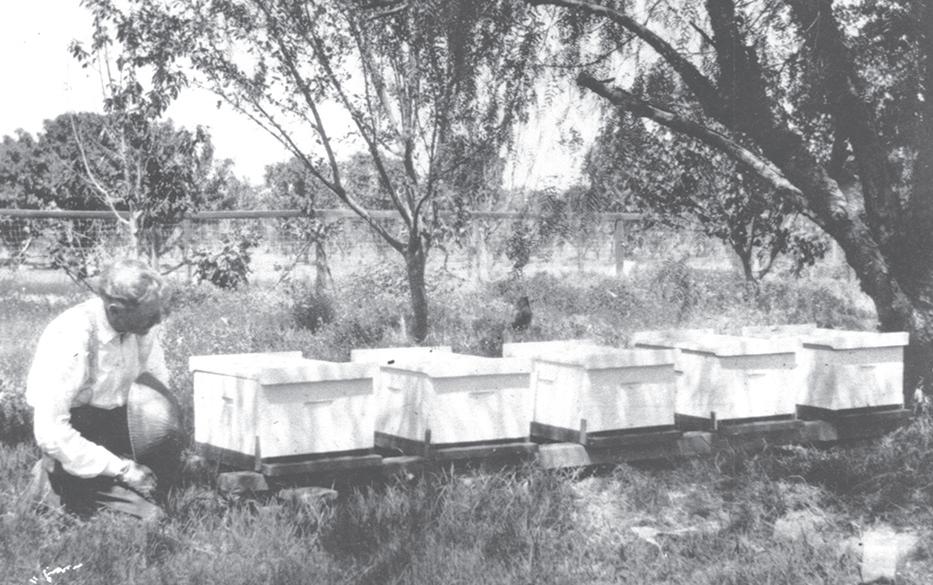 this undated photo, a beekeeper takes advantage of the flowers