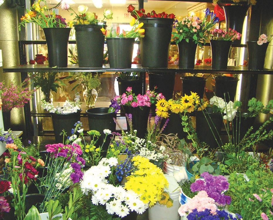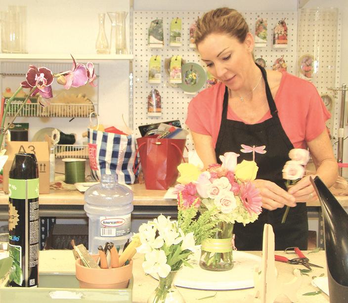 On this particular ursday afternoon, Hagan and Robinson were busy arranging blooms for clients. Purple hydrangeas and the shop’s signature green “lemonade” roses for a funeral arrangement being created on one side of the workspace by Hagan. And a bright and sunny pink, yellow and white arrangement filled out a perky design Robinson was making for a woman’s 90th birthday. While those orders were being filled, Hagan explained that earlier that day she created an arrangement in honor of a baby born just that morning. e new mom has an aversion to daisies, “So we swapped them out and made something custom just for her,” she said.