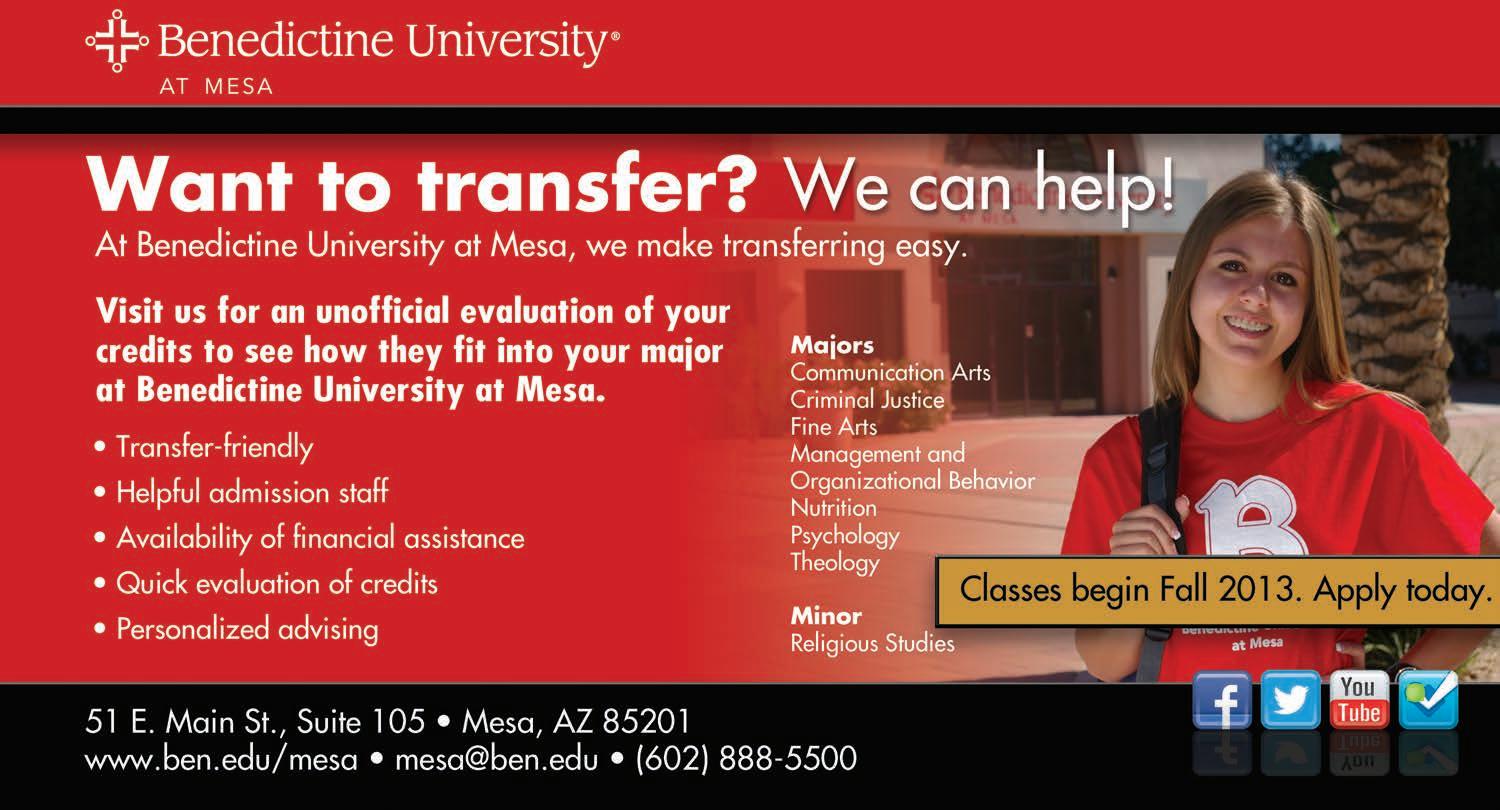 • Reach out to Maricopa’s private and out-of-state college and university advisors to explore transfer options. Some are more expensive than the public universities, but they often accept more credits and offer flexible scheduling. This search tool can help you narrow down what is important to you: http://www.maricopa. edu/transfer/partners/partner_list.php (Click on University Partner Search).
