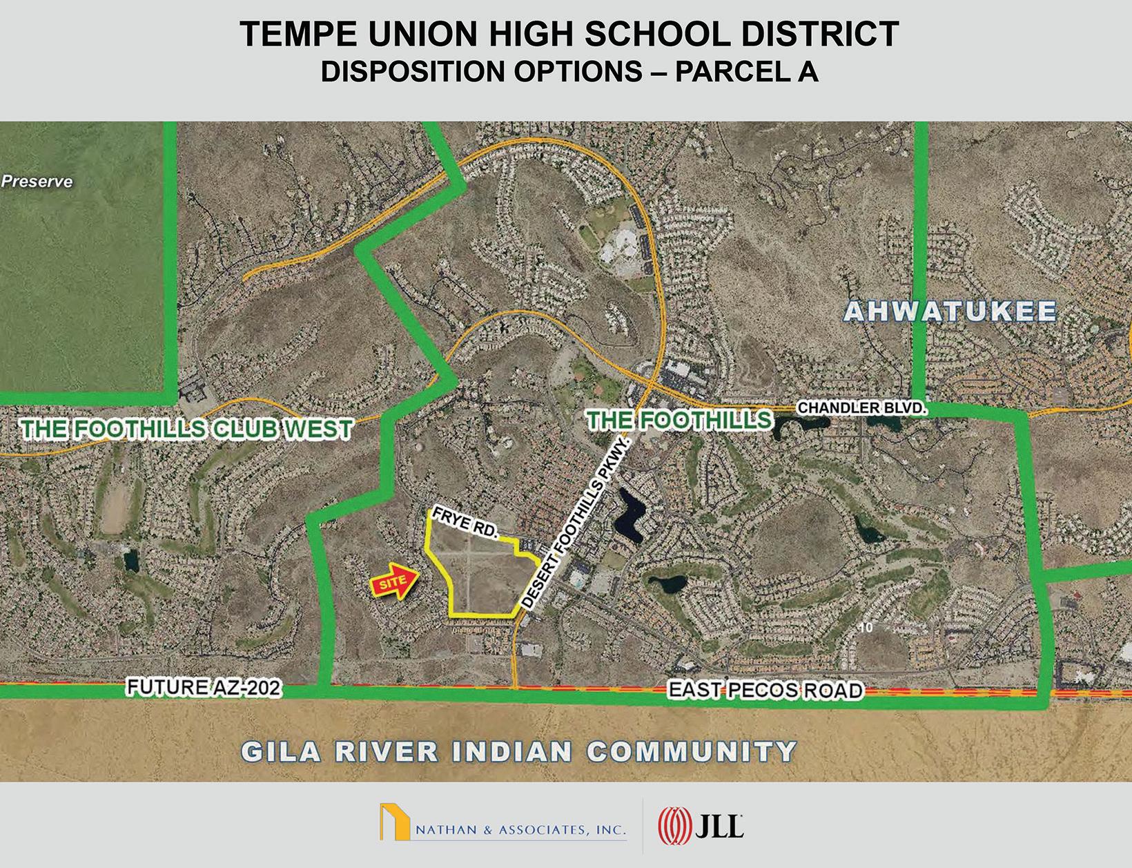 The school board two weeks ago authorized Nathan and Associates to begin marketing the property on the southwest corner of Desert Foothills Parkway near Frye Road for a sale that could yield between $15 million and $19 million for the district.