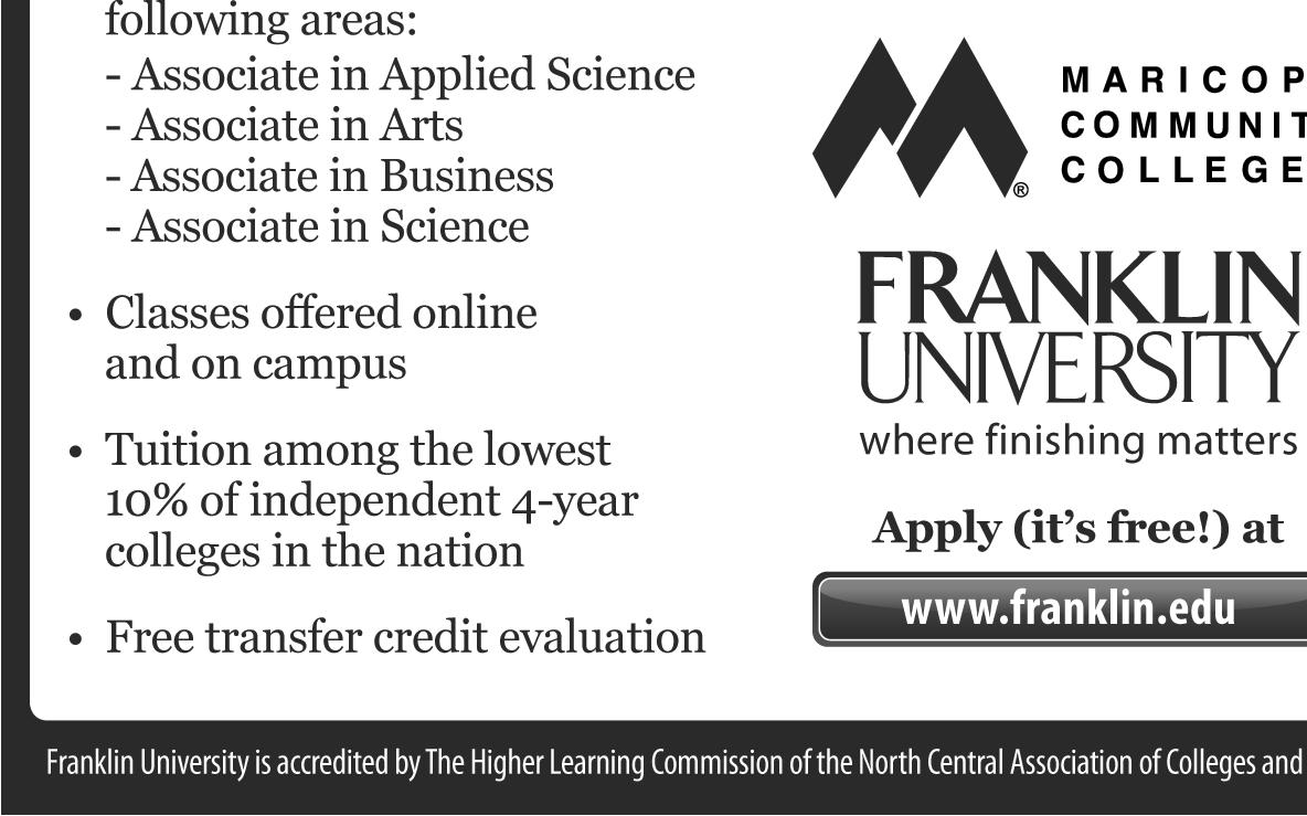 Thinking of attending a four-year university? Then think about attending a Maricopa Community College for your first two years. You can get the same general required courses, but for a lower tuition. You’ll find a lot of great social and academic opportunities outside the classroom, too. Add that to flexible schedules, online classes, and hundreds of program options, and you’ll discover how the Maricopa Community Colleges give you an opportunity to create the college that’s just right for you. Visit maricopa. edu/study to see how you can get the most out of your college experience.