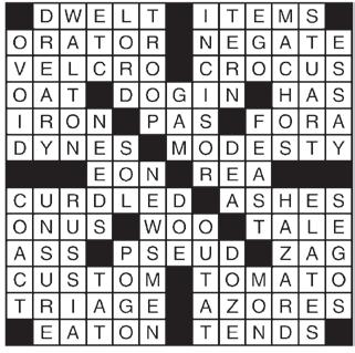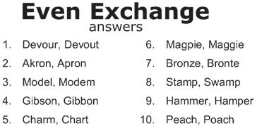 Each numbered row contains two clues and two answers. The two answers differ from each other by only one letter, which has already been inserted. For example, if you exchange the A from MASTER for an I, you get MISTER. Do not change the order of the letters.