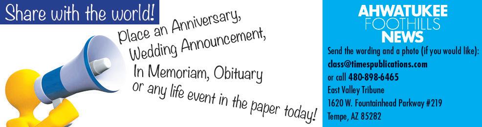 Classified: Elaine Cota, 480-898-7926, ecota@ahwatukee.com