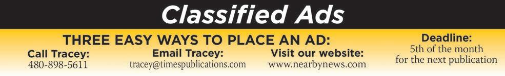 Contact the Nearby News at 480-898-5610 • Fax: 480-898-5606 Editor@NearbyNews.com For more information visit our website at www.NearbyNews.com