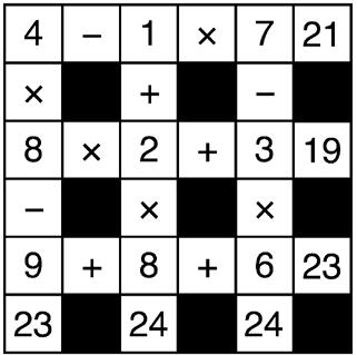 The idea of Go Figure is to arrive at the figures given at the bottom and right-hand columns of the diagram by following the arithmetic signs in the order they are given (that is, from left to right and top to bottom). Use only the numbers below the diagram to complete its blank squares and use each of the nine numbers only once.