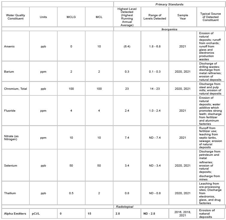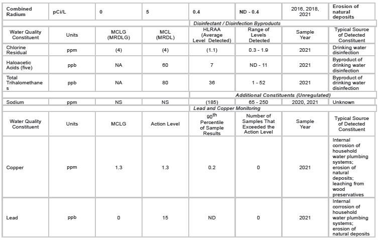 Consumer Confidence Report for Calendar Year 2021