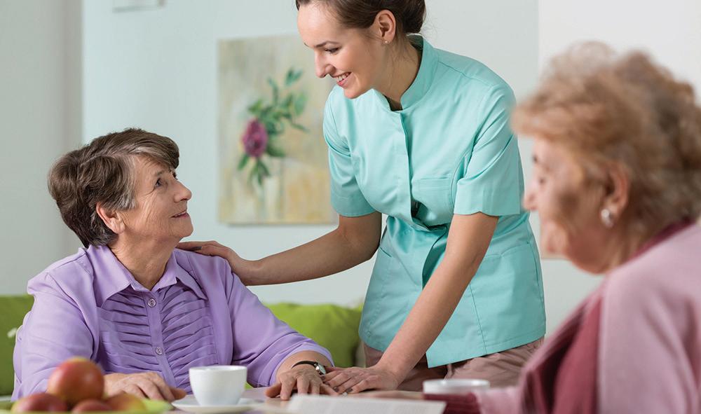 get in the home, which houses eight other residents. e people who live there, who are in their 80s to 100 years old, get help with everyday tasks such as bathing, using the bathroom, dressing, eating, grooming, and transfers from one area of the home to another.