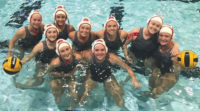 Members of Mesa Water Polo include, from left: back row: back row: Kaley Bigley, Caroline Walker, Kylie Price, Rachel Ray, Maeve Jones and Lydia Heinrich; front: Stephanie Greasley, Hailey Price and Sam Camblin .