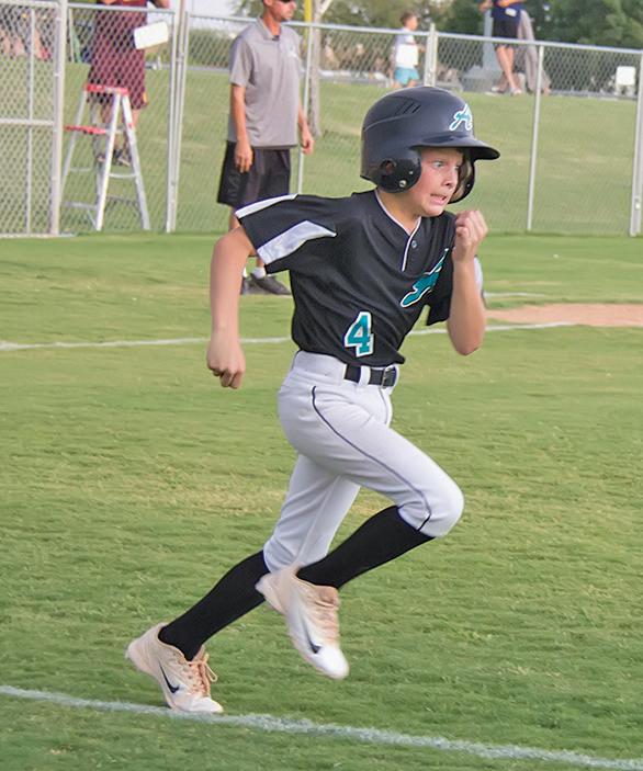 Clockwise from left: Carson Bittner, 12, gets ready to throw a strike; Teagan Kearney, 12, tries to throw a base-runner out; Alex McKee, 10, stays poised for a possible hit; Max Nickelsburg, 12, takes off for another base; and Teagan Kearney rounds second and heads to third. The 10-year-old and 12-year-old Ahwatukee All Stars teams both lost in district championship play on Friday while the 11-year-olds advanced toi the state tournament Monday, July 17, in Show Low.
