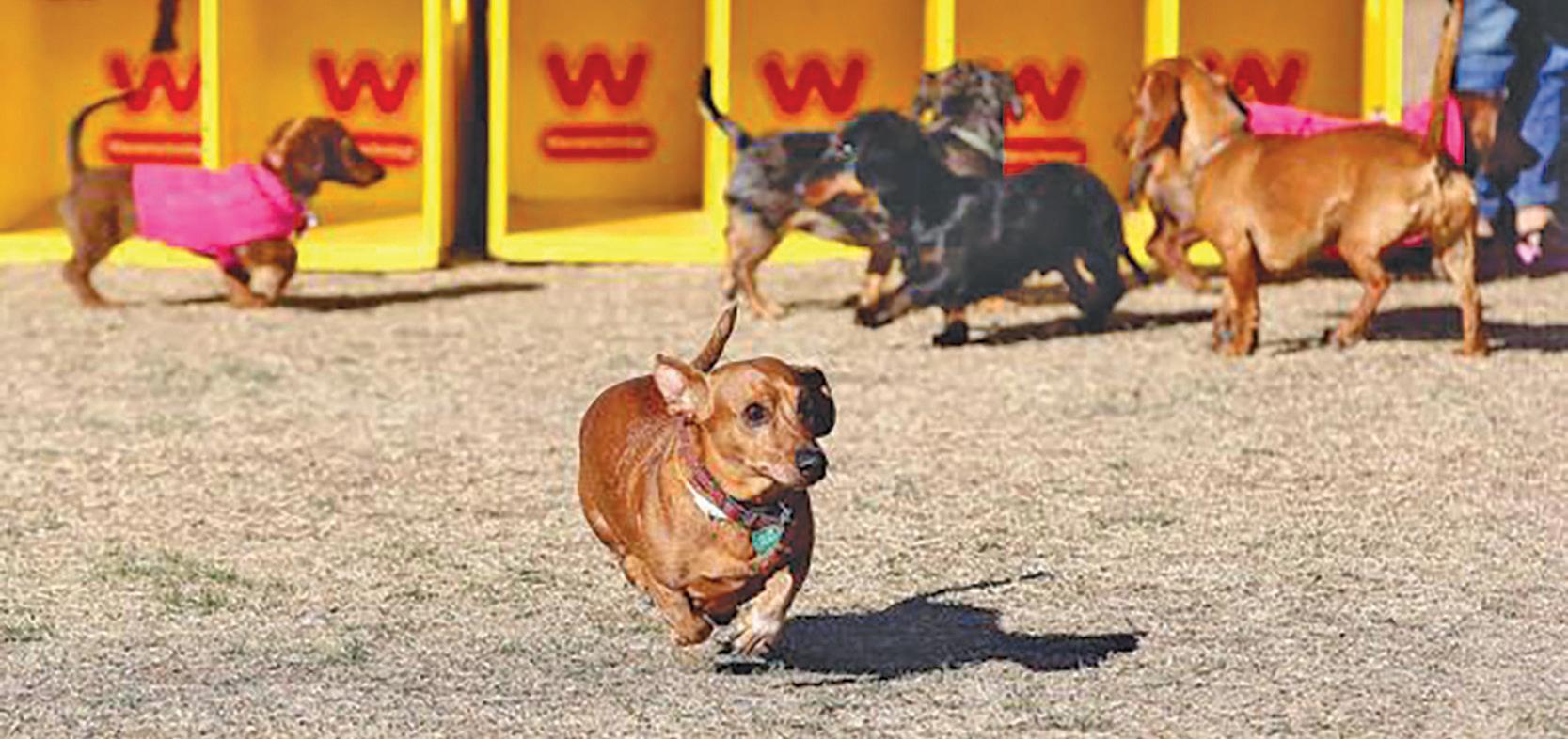 The winner claims the title, “Fastest Dog in the West” at the closing ceremony, earns $1,000 and a custombuilt Wienerschnitzel Dog House. Last year’s winner was a 2-year-old San Diego pup named Darcy, one of the youngest ever to win the race.