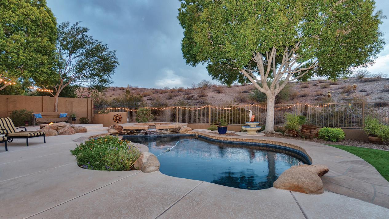car garage. Upgraded T.W. Lewis Preserve Home in Mountain Park Ranch. Home features a gourmet kitchen, large family room with gas fireplace, and first floor master bedroom suite. The entertaining backyard has a Pebbletech pool and waterfall, built in BBQ, huge balcony with spiral staircase, and amazing views.