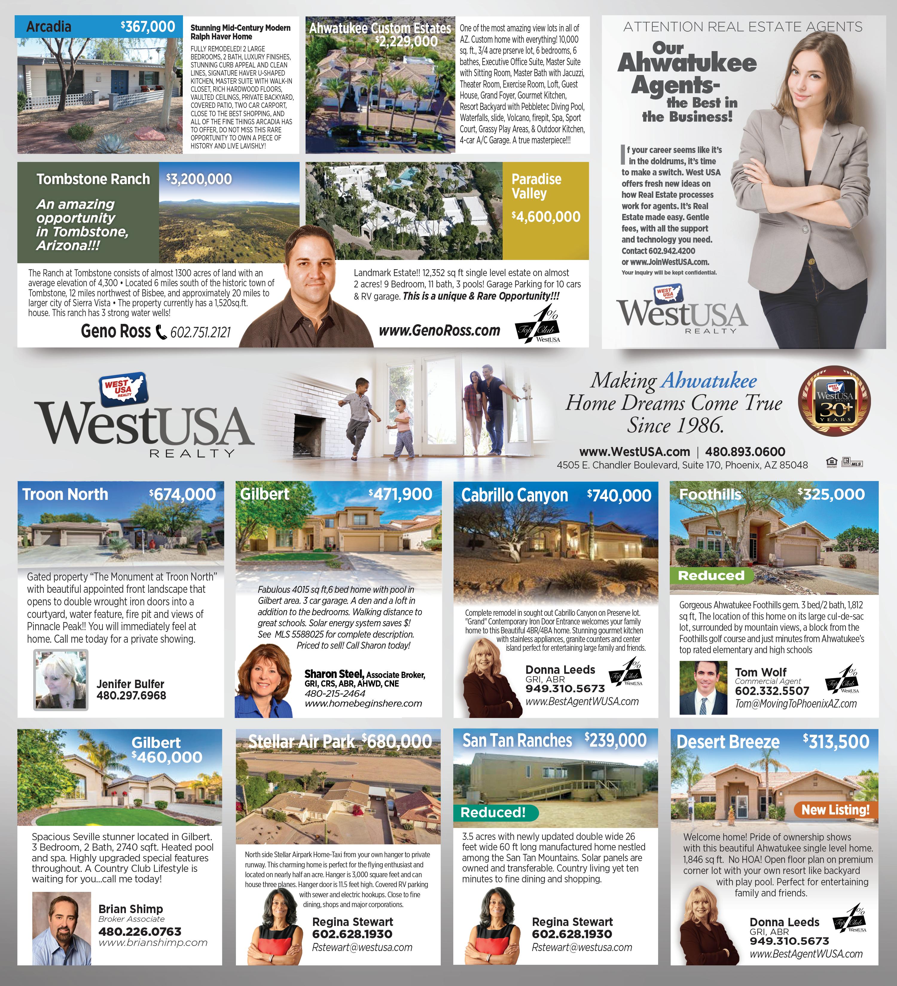TheAhwatukeeFoothillsNewsis published every Wednesday and distributed free of charge to homes and in single-copy locations throughout Ahwatukee Foothills.