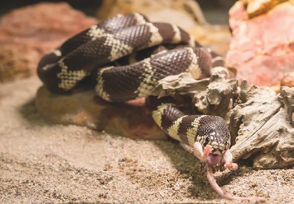 Stay calm. Leave the animals alone and they will leave you alone. at’s Ranger B’s advice for how to interact with just about all of the desert’s creatures. Bees? Don’t swat or run; just stay calm and try to ignore them. Mountain lions? Stay calm, or as Ranger B suggests, “just pretend like you’re calm.” Javelina? He says they’re not dangerous, so if you see one, guess what Ranger B thinks you should do. Yep. Calm down and slowly back away. When finished with his educational talk, he let the kids huddle around the snake terrariums and watch him feed the excited reptiles little rodents, to a steady soundtrack of squeals, groans and gasps.