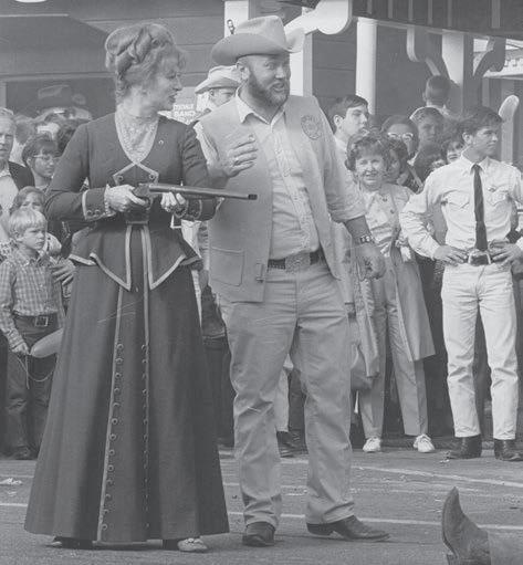 In this photo from 1969, Amanda Blake, who played Miss Kitty on the TV series “Gunsmoke,” helps recreate an Old West scene in the annual Parada del Sol Parade. To the right of her in the photo is future Scottsdale mayor Herb Drinkwater. (Photo courtesy Scottsdale Historical Society)
