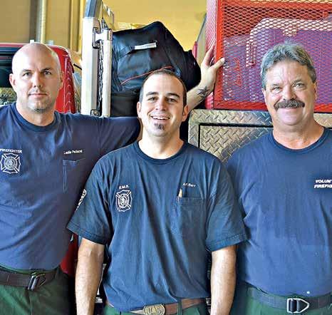 The Sun Lakes Fire Department, as part of the wildfire mutual aid system, was deployed Aug. 4 to Anderson, California, to fight the wildfires with its brush unit “Brush 231” for a maximum of two weeks. The combined crew of Sun Lakes firefighters Ariel Barr and Les Pechacek, Alan Glenister of the Goldfield Ranch Volunteer Fire Department, and Coy Boggler of the North City Fire Department relieved crews already fighting huge blazes that have exhausted available firefighting manpower and resources. Shown above are, from left, Pechacek, Barr and Glenister. Photo by Brian Curry