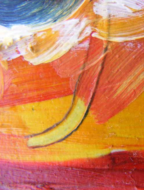 Smith defines her art as “contemporary urban eclectic,” a mixture of modern pop art and urban designs in acrylics and watercolors. She puts a modern flair on urban trends incorporating graffiti, tattoos, folk art and city dwellings in her paintings. Smith’s work has been featured in Tattoo Magazine, Tattooed Art & Culture Magazine, in newspapers, on local TV and in various galleries and businesses throughout Arizona and California.