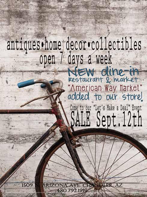 instruments; artwork; office/school supplies; gently used bedding and linens; tools; vinyl records; watches; costume jewelry; retro toys; games and dolls. Items that will not be accepted include books; CDs; mattresses; shoes and clothing other than dresses and costumes. Due to limited storage space, large furniture and large working appliances will only be accepted from 10 a.m. to 5 p.m. Friday, Aug. 21. Call (480) 782-2689 on or before Friday, Aug. 21, for the large item dropoff location.
