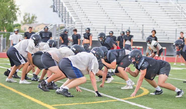 Williams Field High football players scrimmage at practice. Last year, Williams Field had an undefeated season, going 14-0 and claiming the 5A state championship trophy.