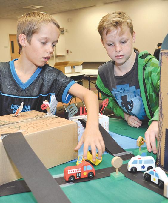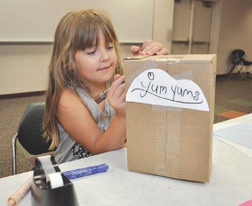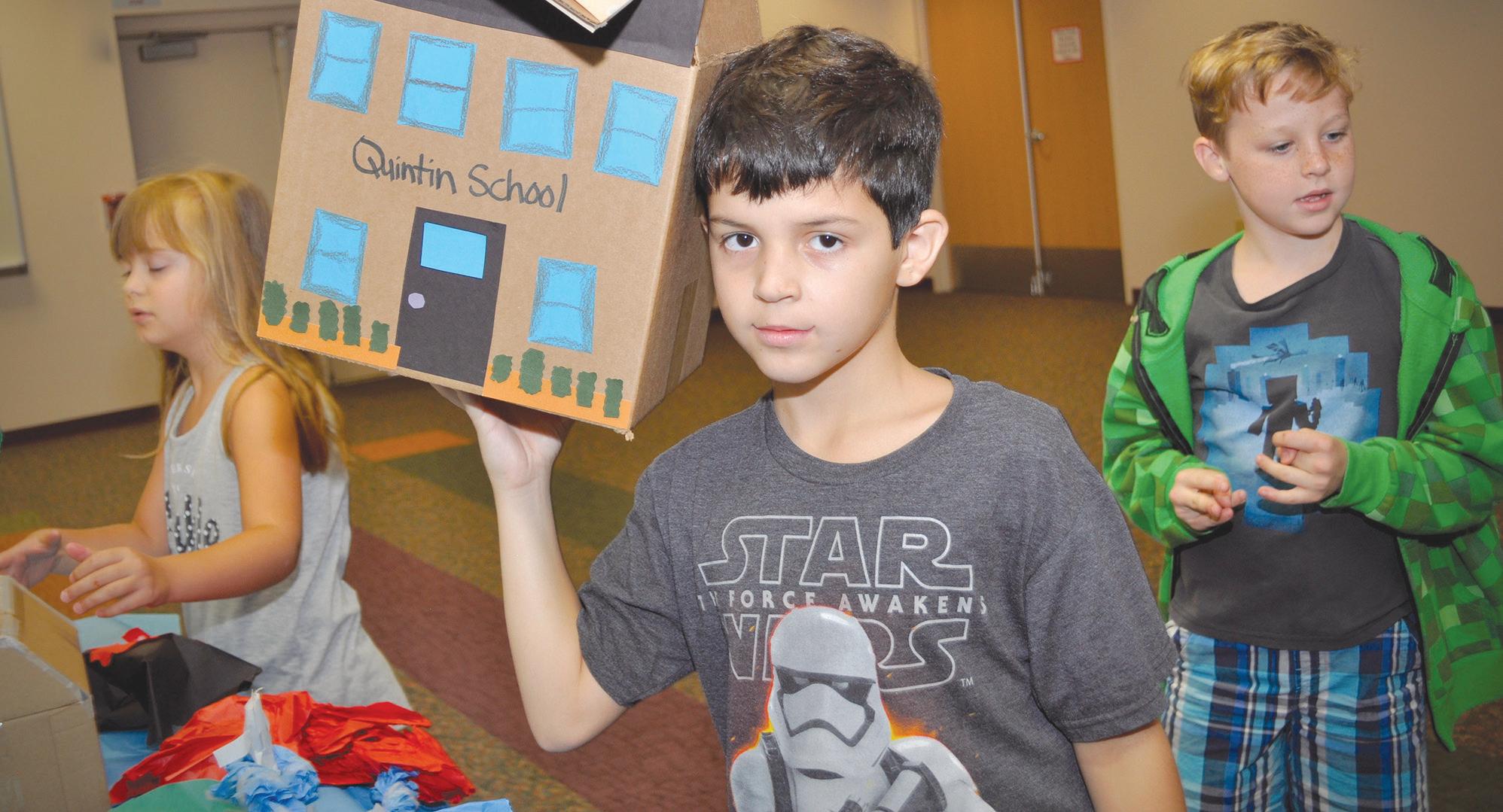 Graysen Hipps, 9, carries a building at a recent “Cardboard City” event at Mesa Red Mountain Library.