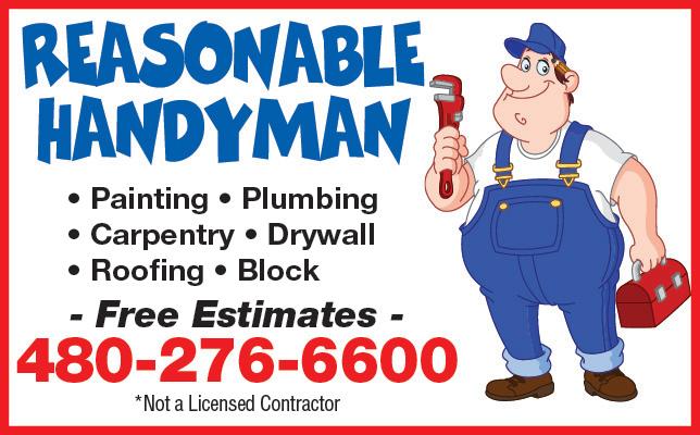 Plumbing, electric, irrigation, garage doors, water heaters, tile and drywall repairs, carpentry, handyman lists and other services. All work guaranteed. Sean Sornberger 480-699-7990