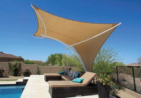 New modernistic camping cabins, built on caissons and linked by raised walkways and decks, protect the fragile desert floor and allow rainwater to cascade through natural arroyos. e site’s sustainable design includes the use of recycled materials, low water-use fi xtures and natural lighting from windows and skylights.