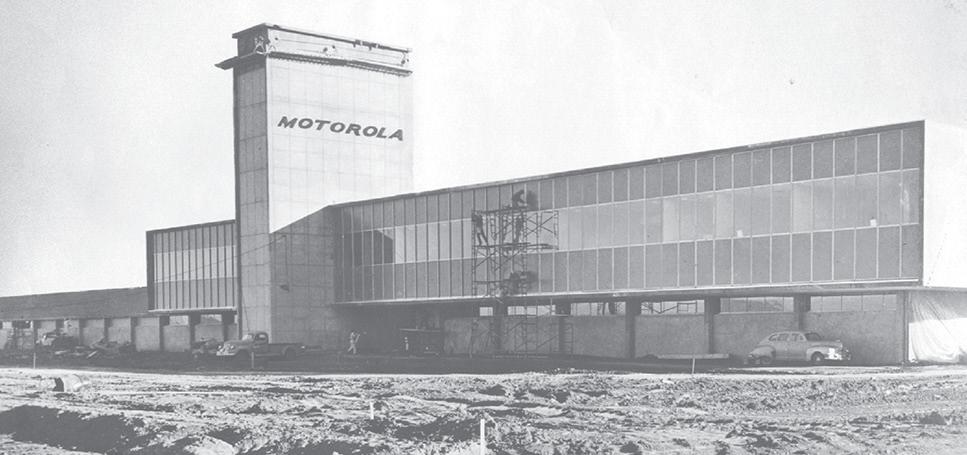 A lot of forces came together in the 1950s to create a population boom in Scottsdale, including air conditioning and the city’s burgeoning arts and tourism industries. e arrival of a high-tech company also played a decisive role in the city’s growth. Motorola, pioneers of car radios and walkie talkies, among other innovations, helped super-charge the development of an already-growing city. e completion of a large Motorola plant in 1957 suddenly gave the “West’s Most Western Town” a