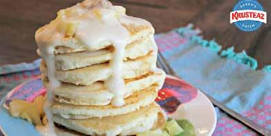 The recipe uses Krusteaz buttermilk pancake mix combined with vanilla cream syrup and cinnamon butter.