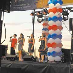 Rows of memorials commemorate those who served our country. Singers entertain the audience.