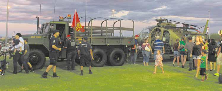 examine some of the military vehicles on display.