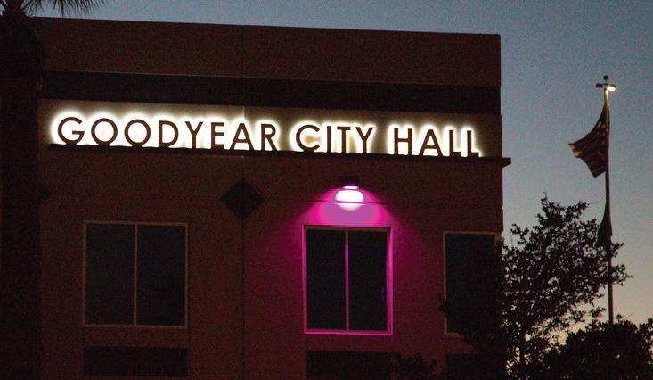 In support of the statewide Lighting Arizona Purple initiative to raise domestic violence awareness, the city of Goodyear will light City Hall, the Goodyear Branch Library and the police operations building purple this month.