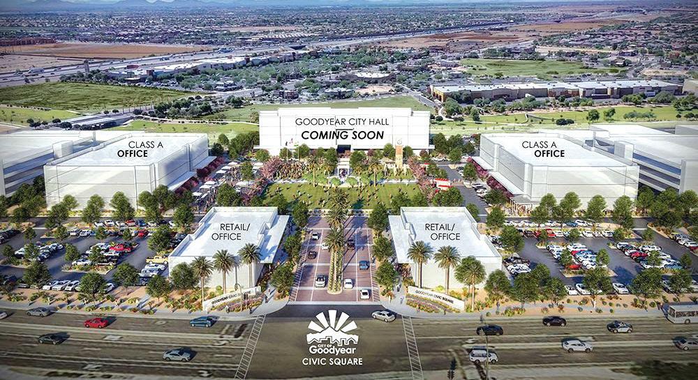 Despite disruptions caused by the COVID-19 pandemic, Goodyear is moving forward with the $87 million Goodyear Civic Square at Estrella Falls project.