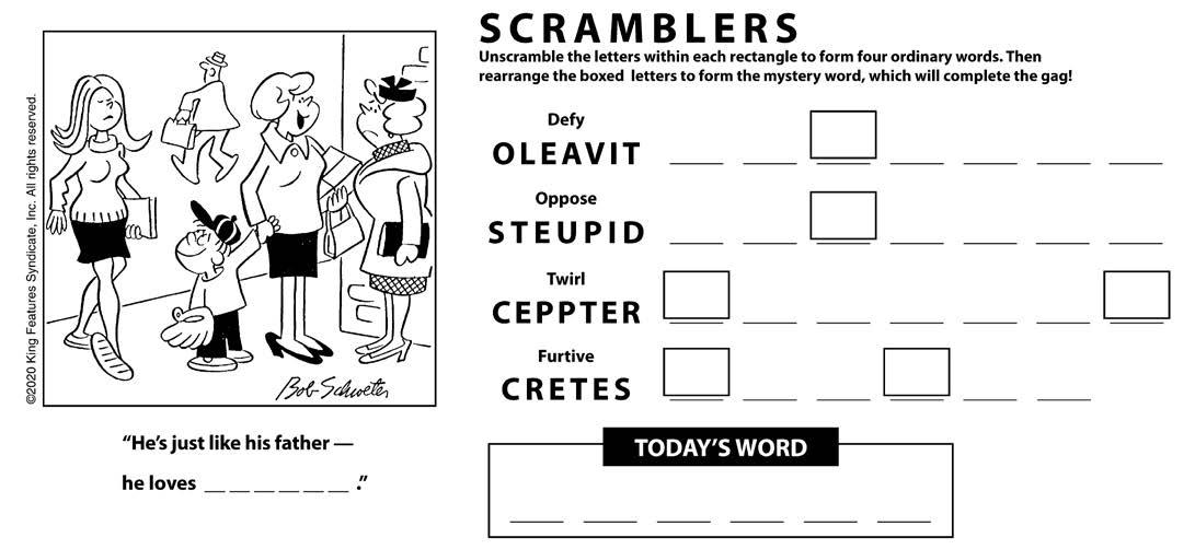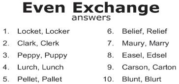 Each numbered row contains two clues and two answers. The two answers differ from each other by only one letter, which has already been inserted. For example, if you exchange the A from MASTER for an I, you get MISTER. Do not change the order of the letters.