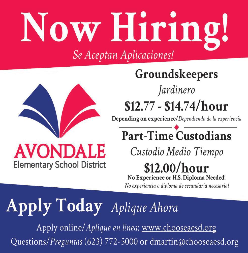 The Roosevelt Irrigation District has positions open. We are looking for conscientious, hard workers that are willing to learn. Positions open for a Mechanics Assistant and Water Clerk. Please visit the office at 103 W Baseline Rd. Buckeye, AZ 85326 for an application. No phone calls.