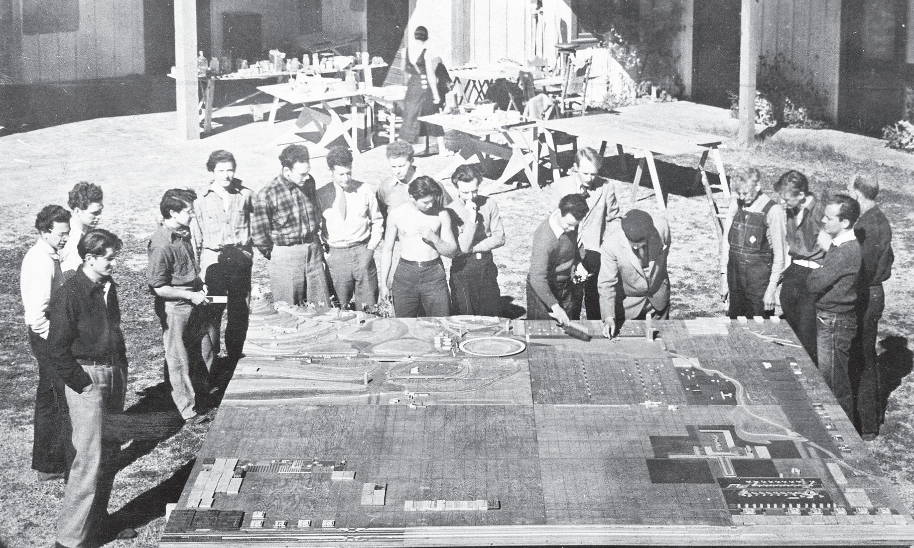 1935 to work on an intricate, 12-by12-foot scale model of Broadacre, which represented a four-square-mile community. Dr. Chandler let them take over La Hacienda, a former polo stable he had converted to hotel rooms.
